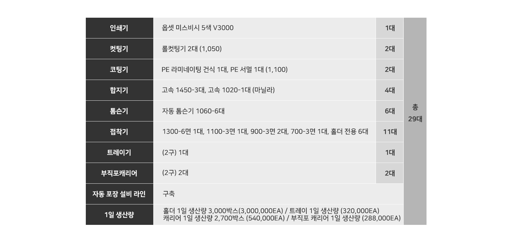 (주)종이나라플러스 설비현황